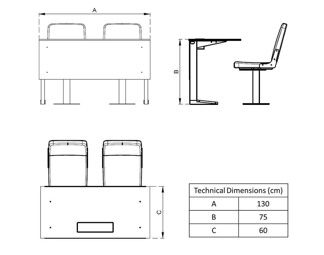 Kablo geçiş kanalları ve kişisel çalışma alanı sağlayan bu masa, medya alanlarında işlevselliği artırır. Genellikle basın tribünü koltuklarıyla birlikte kullanılır.
